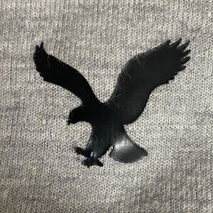 A grey zip-up hoodie from American Eagle, has two zipper pockets. Missing drawstring.