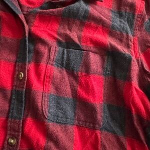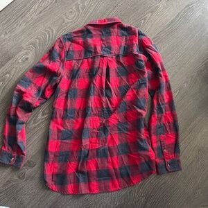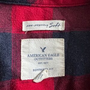 Classic and cozy American Eagle Outfitters flannel shirt in a bold red and black plaid pattern. Features a boyfriend fit for that perfect relaxed and slightly oversized look. Made from AE’s signature Ahh-Mazingly Soft fabric for ultimate comfort.
