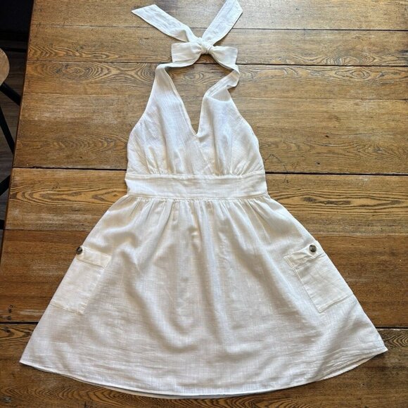 American Eagle Backless Halter Sundress Dress Womens M White Preppy Sorority