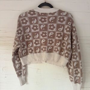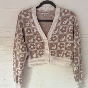 American Eagle Beige Cardigan | Smiley Face + Yin Yang | Size M