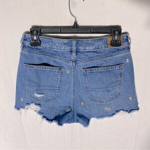 American Eagle Blue Denim Cut Off Jean Festival Shorts W Tiny Flowers 4