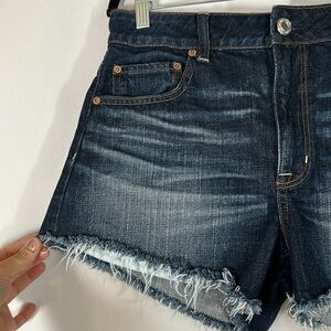 American Eagle Blue Frayed Hem High Rise Festival Denim Jean Shorts