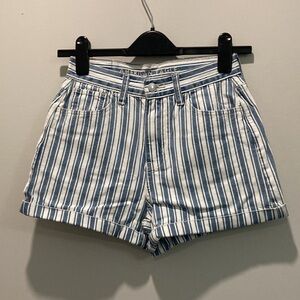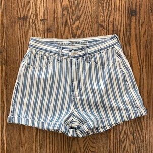 ⫸Women’s American Eagle Blue Stripes High Rise 10.5" Jean cotton shorts with cuffs and 5 pockets