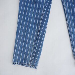 American Eagle Blue White Stripe Straight Tapered Mom Denim Blue Jeans 2