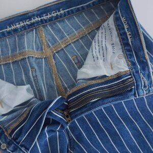 American Eagle Blue White Stripe Straight Tapered Mom Denim Blue Jeans 2