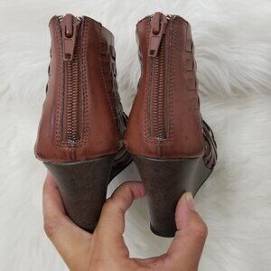 NWOT American Eagle Brown Woven Peep Toe Wedge Heels Zippered Back Size 6.5 EU 38 Basket Weave Style
