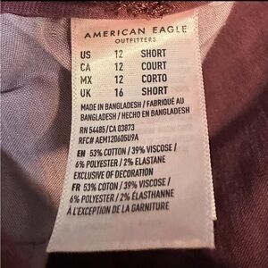 American Eagle Burgundy Jean Jegging Women's Size 12 Short