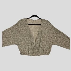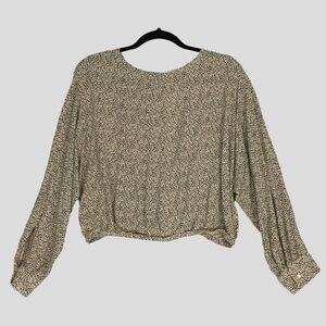American Eagle Top / Shirt / Blouse. Women's Size Medium. 100% Viscose. Cheetah print. Long sleeve with single button cuff. Low draping criss cross front creating a deep V neck. Elastic waist.