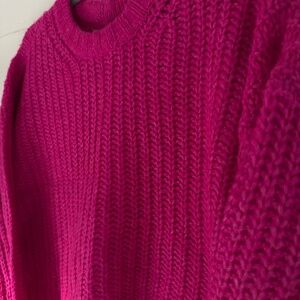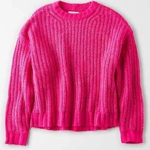 ▫️ Soft, cozy chunky-knit American Eagle sweater in a bold hot pink shade