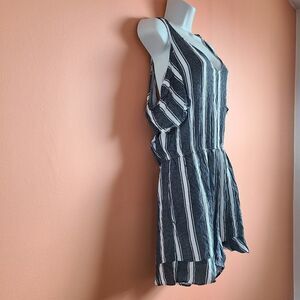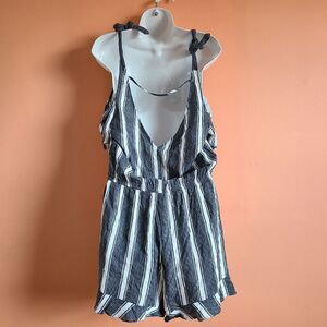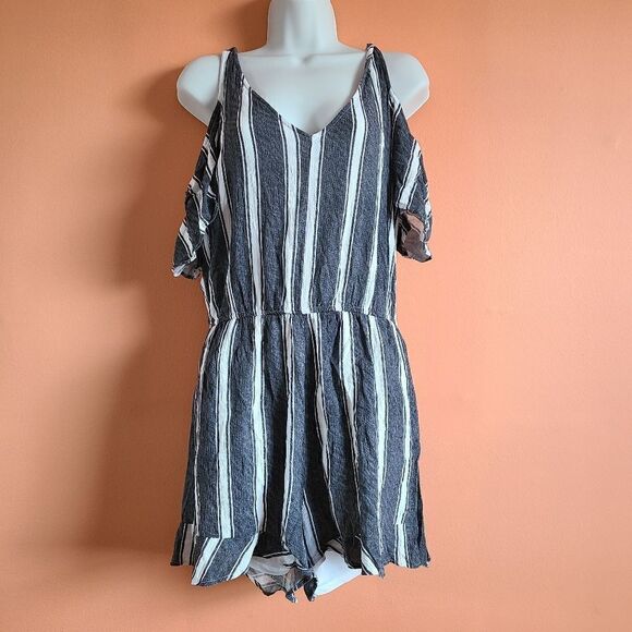 American Eagle Cold Shoulder Romper – Blue & White Stripe, Size L