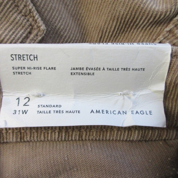 American Eagle Corduroy Super Hi-Rise Flare Women 12 Beige Cotton Button Fly 572