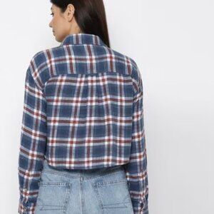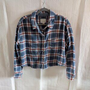American Eagle Cozy Cabin Cropped Flannel Cotton Plaid Button-down Shirt Medium