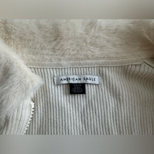 American Eagle‎ Cream Faux Fur Cropped Zipped Sweather Size S