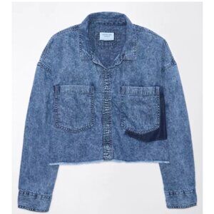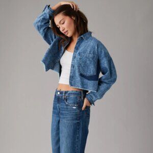 American Eagle Denim Button-Up Shirt Cropped