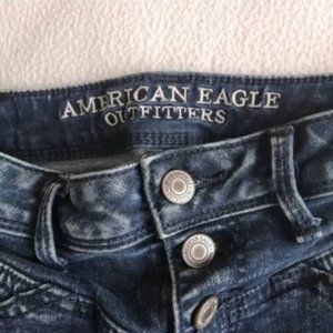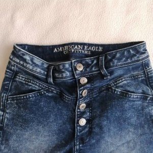 American Eagle Distressed High Waisted Blue Denim Shorts