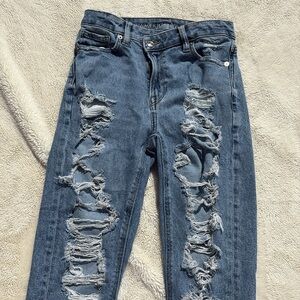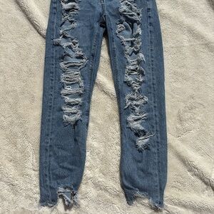 American Eagle Distressed Mom Jeans Sz 0 Short | Ripped Y2K Denim Aesthetic
