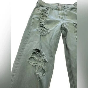 American Eagle Distressed Skinny Light Green High Rise Jeans Size 0