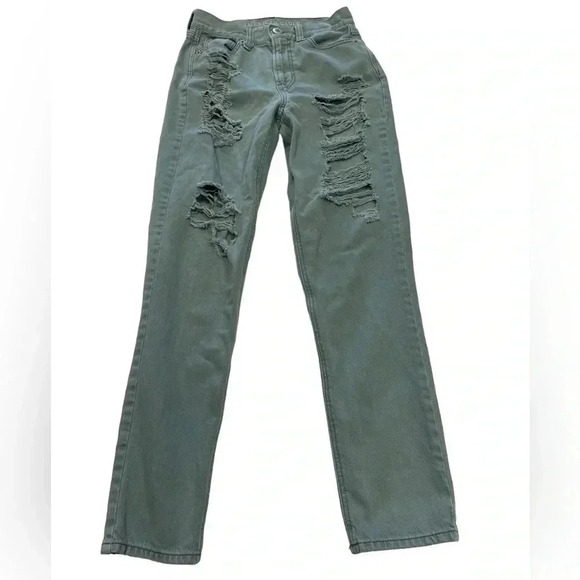 American Eagle Distressed Skinny Light Green High Rise Jeans Size 0
