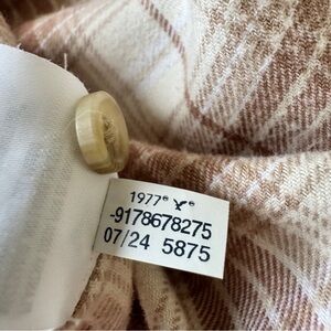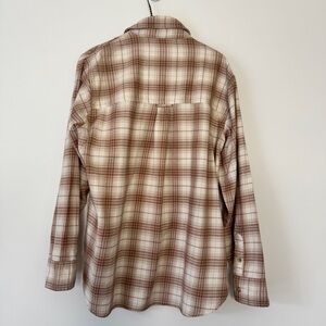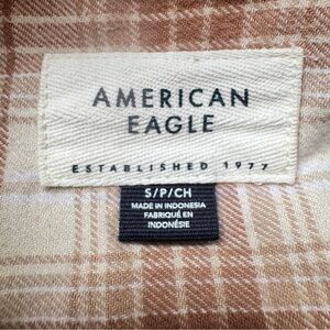 American Eagle Flannel Shirt Soft Tan White Plaid Button Down Collar Sz S