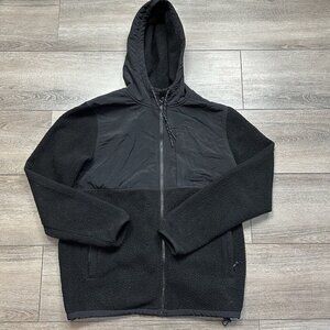 American Eagle Fleece Hoodie Sweatshirt Mens Small Pullover Sherpa Black Shacket