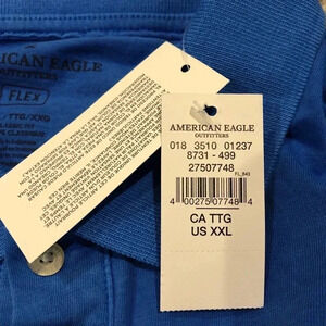 New! Royal blue soft fabric 100% cotton. 2 button, collard short sleeve shirt. Classic embroidered eagle logo on left chest. Measurements Length 31” Width 25”