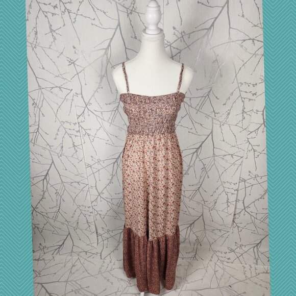 American Eagle Floral Print Smocked Tiered Strappy Maxi Dress