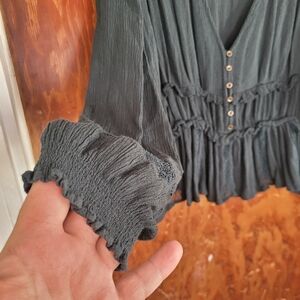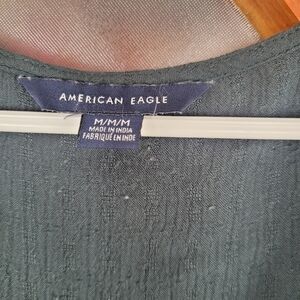 American Eagle Forest Green Cropped Long Sleeve Boho Top M