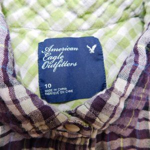 American Eagle Girls 10 Plaid Snap Front Shirt