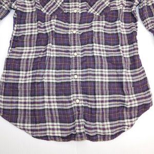 This American Eagle Outfitters Girls 10 Purple Plaid snap button front Shirt with Green white gingham lining is in great clean condition. 100% Cotton - Machine washable.