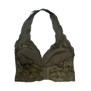 American Eagle Green Floral Lace Halter Bralette with Size XS