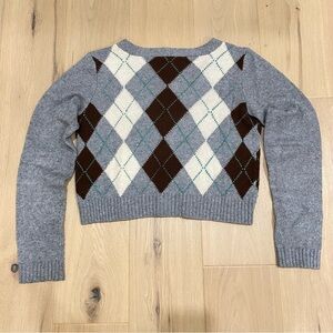 American Eagle | Grey Argyle Plaid Cardigan Sweater 🩶