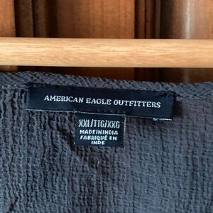 Beautiful charcoal grey American Eagle blouse. Size XXL but more like an XL fit. Has pull ties on sides to adjust fit.