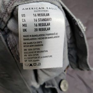 Standard mom jeans from American Eagle. They are a somewhat lighter material than usual for AE mom jeans and they don't have much stretch. Only worn 2-3 times (there is nothing wrong with them, I just discovered that AE curvy jeans fit me better and replaced these with another pair).