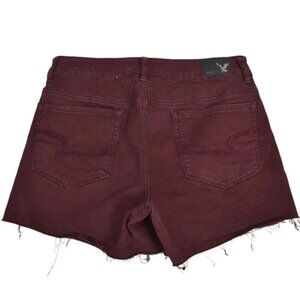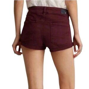 American Eagle Hi-Rise Shortie Jean Shorts Burgundy Super Stretch Size 8