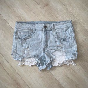 American Eagle Hi-Rise Shortie Size 8 US Light Denim Lace High Waisted Shorts
