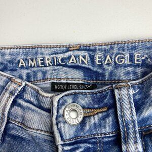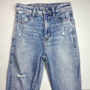 American Eagle High Rise Distressed Ripped Jeggings Blue Sz 0 Long