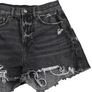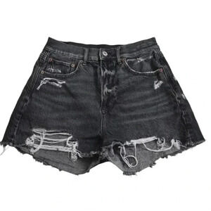 American Eagle Highest Rise '90s Boyfriend Jean Shorts Black Denim Distressed 4