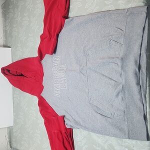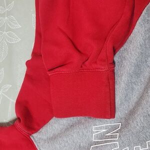 Missing Hood drawstring and some wear at tip of hood and hands (red is lighter)