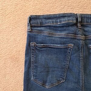 American Eagle Jeans Kick Boot Crop Women's 8 Short Blue Denim Frayed Hem