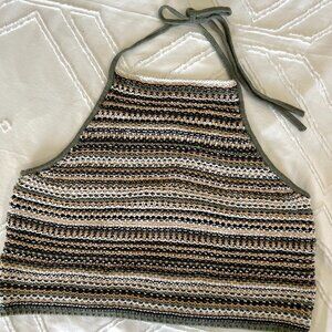 ✦EUC multi coloured (green/brown/tan) crochet halter crop top in size xxl