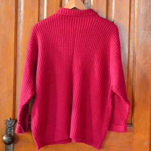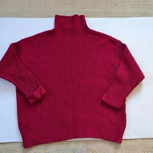 Hot Pink! Chunky knit sweater with faux turtleneck/folded over turtleneck.