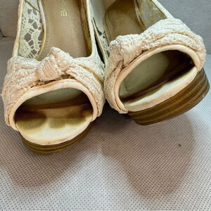 American Eagle Krissy Crochet Lace Peep Toe Wedge Women Size 6.5