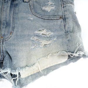 American Eagle Light Blue Distressed High-Waisted Jean Shorts