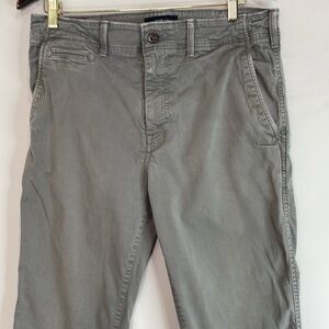 Mens grey American Eagle Extreme Flex Original Straight Lived-In Khaki Pants.
