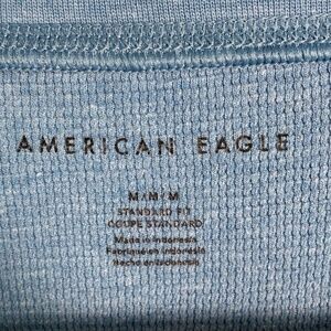 American Eagle Men's Pale Blue Long Sleeve Tight Waffle Knit LS T-Shirt Medium