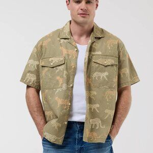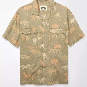 American Eagle Men's Shirt Size M 24/7 Stretch Jaguar Print Button-Up Poolside