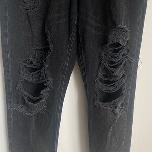 American Eagle Mom Jean High Rise Distressed Ripped Black Denim Ankle 10 R