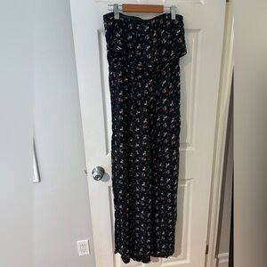 American Eagle NWT strapless black floral jumpsuit wide leg size small