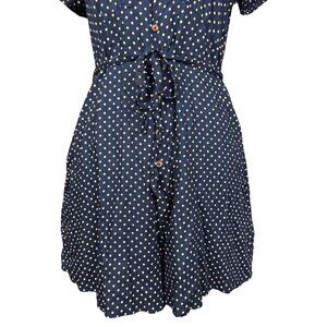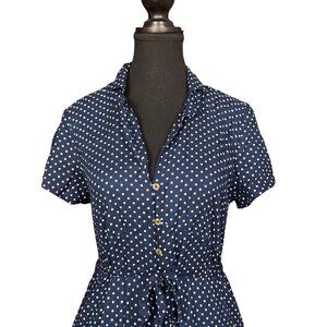 American Eagle Navy Polka Dot Button Front Romper Medium Viscose Short Sleeve