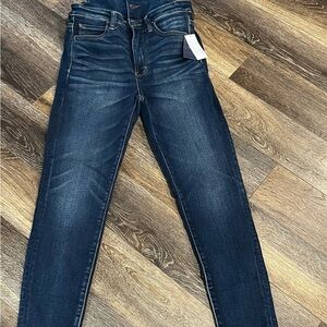Elevate your denim game with these stylish American Eagle jegging overalls. The blue stretch denim jeans are designed with a solid pattern and a zip closure. The medium fabric wash gives it a classic look, Size 6 Short